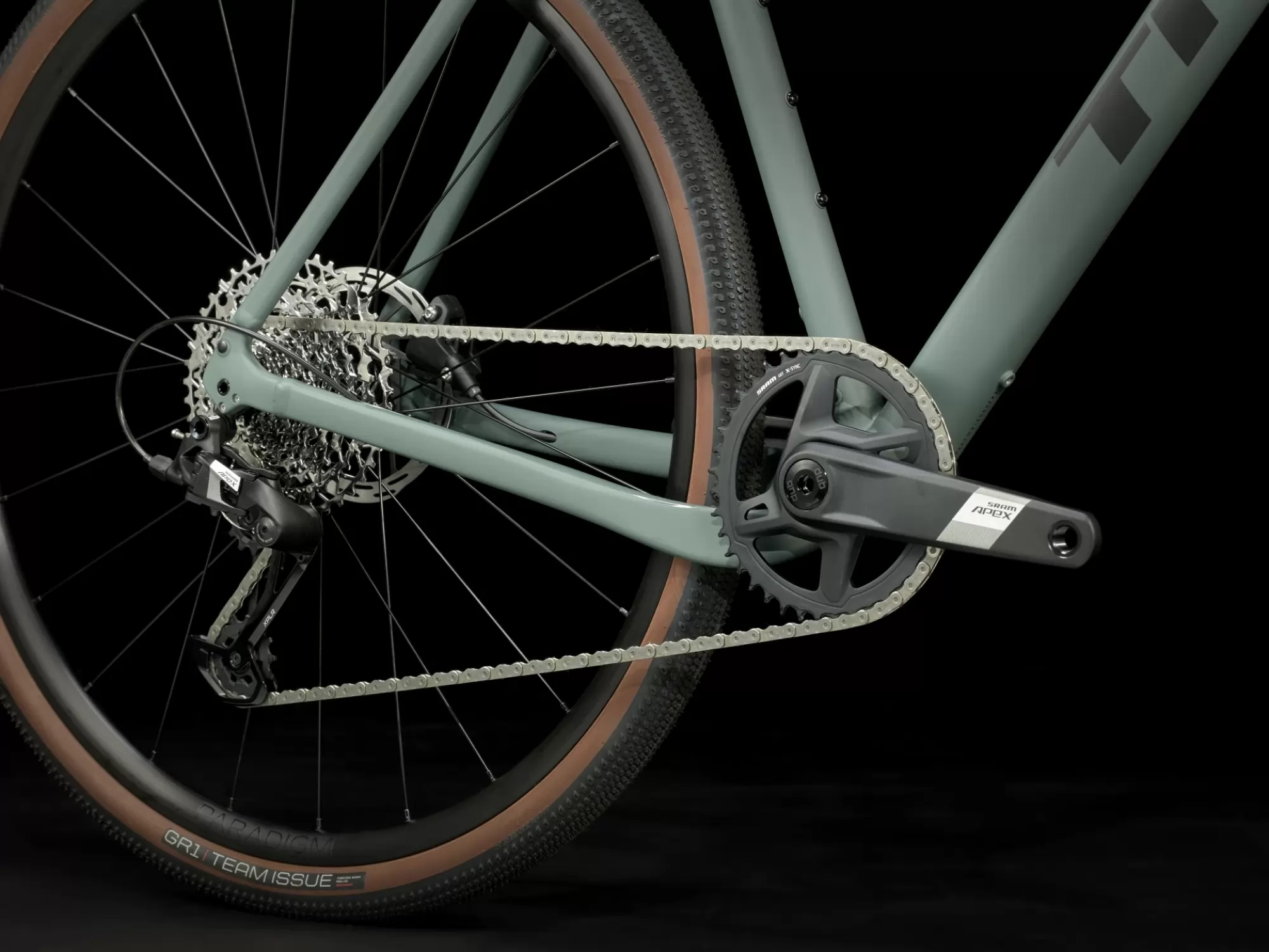 - SRAM's Apex 1x12 drivetrain gives you tons of gears for grinding up steep grades