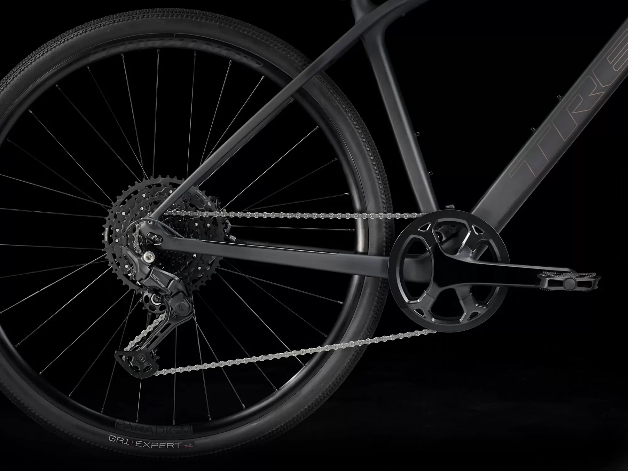 A lightweight 400 Series OCLV Carbon frame and fork, a Shimano CUES 10-speed drivetrain with a wide-range cassette, Shimano hydraulic disc brakes for all-weather stopping power, a lightweight tubeless ready wheel set, wide, fast-rolling Bontrager GR1 Expert gravel tyres and a vibration-absorbing handlebar and ergonomic grips.