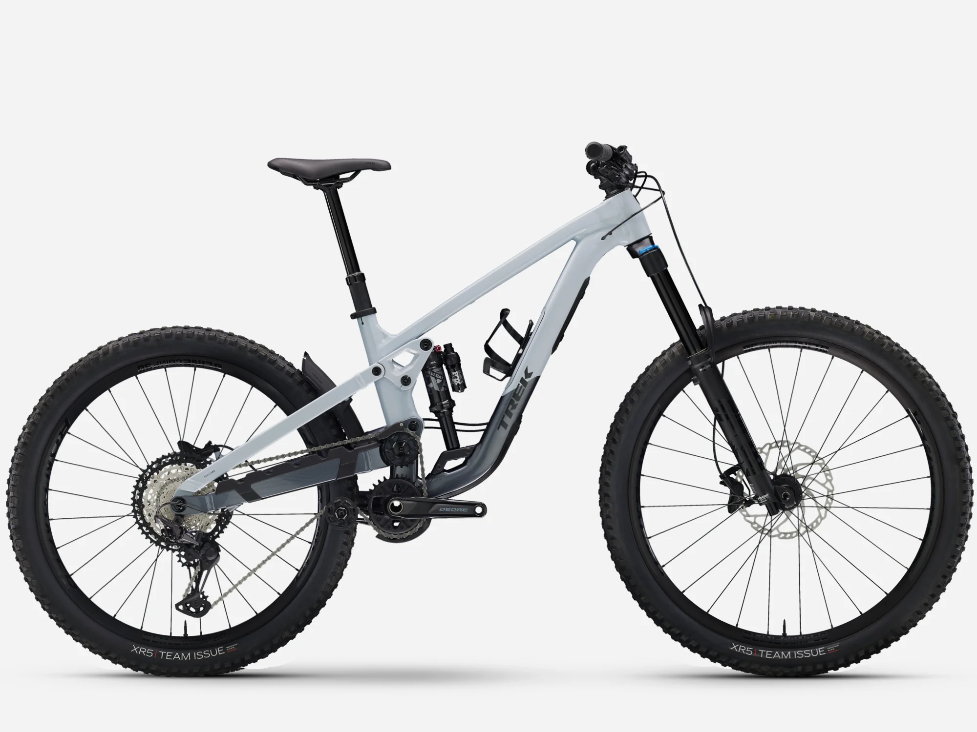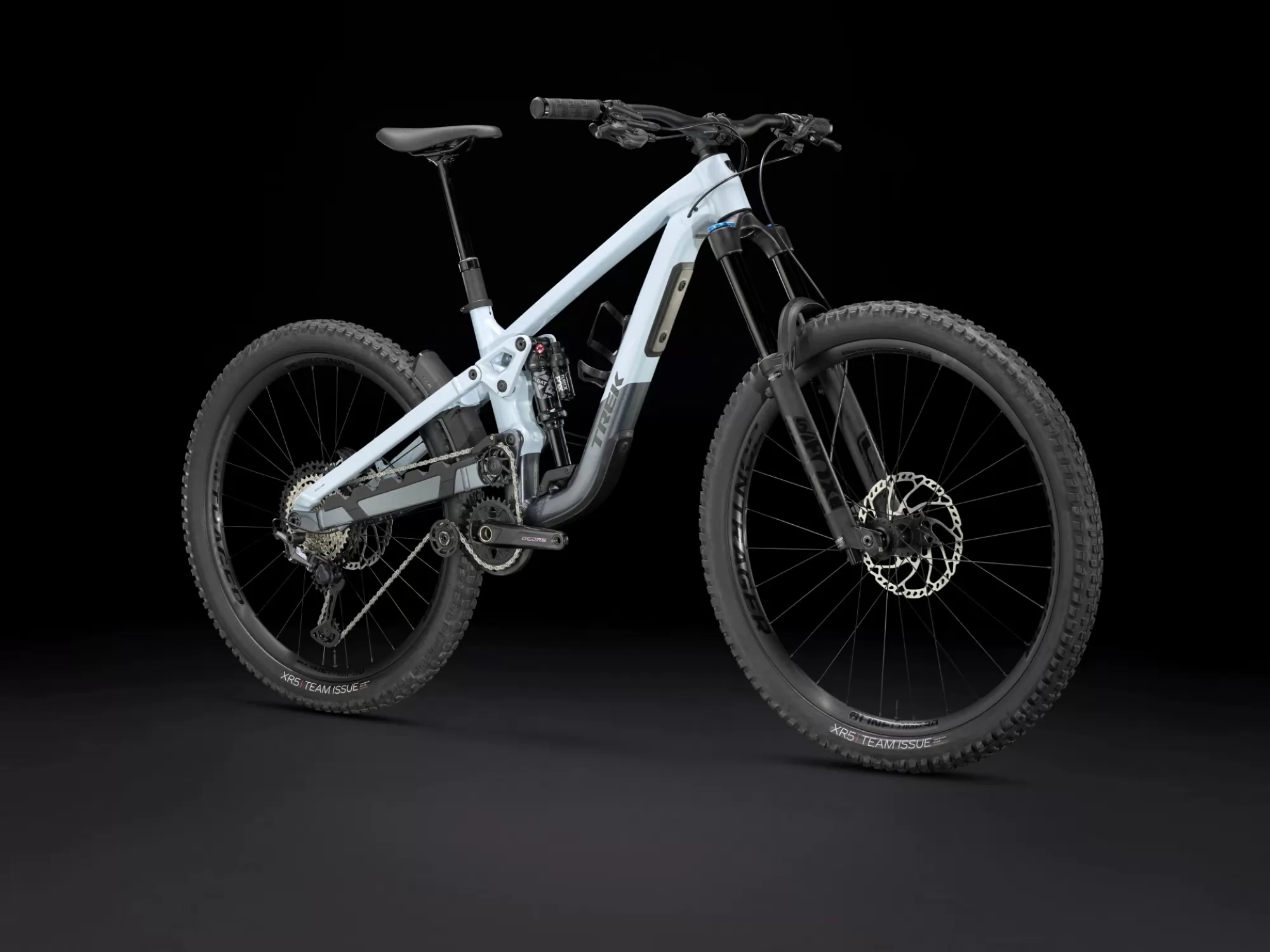 An Alpha Platinum Aluminium frame with high pivot suspension and idler pulley, plus internal storage. 170 mm of front and rear travel with a FOX Rhythm 36 fork with Float EVOL air spring and GRIP damper and a Fox Performance Float X shock.. Plenty of gears for punchy climbs with a Shimano XT drivetrain, a Bontrager Line Dropper and a MX wheel set-up with 29 in front and 27.5 in rear Bontrager Line Comp 30 Tubeless Ready wheels with Rapid Drive hub.