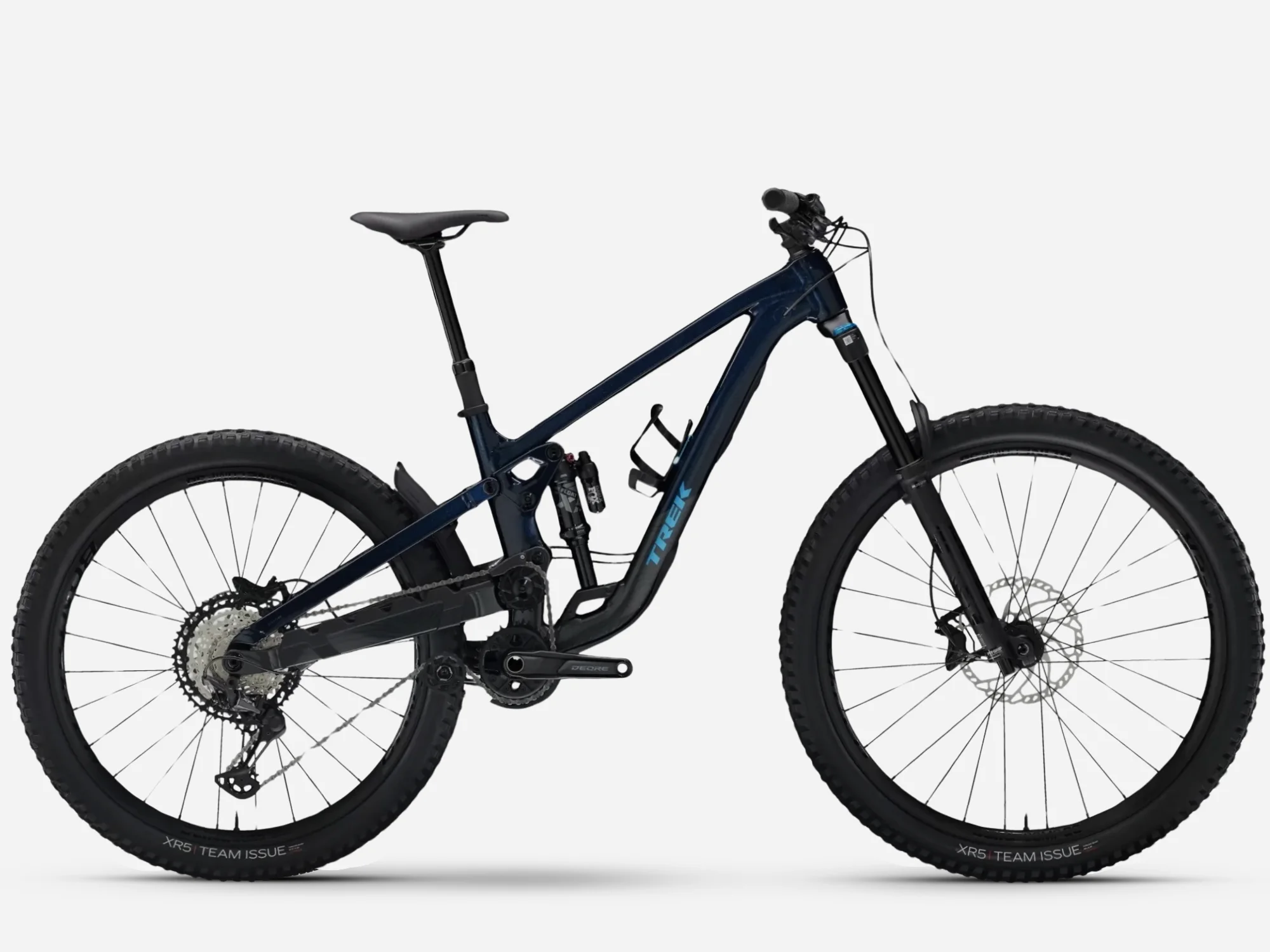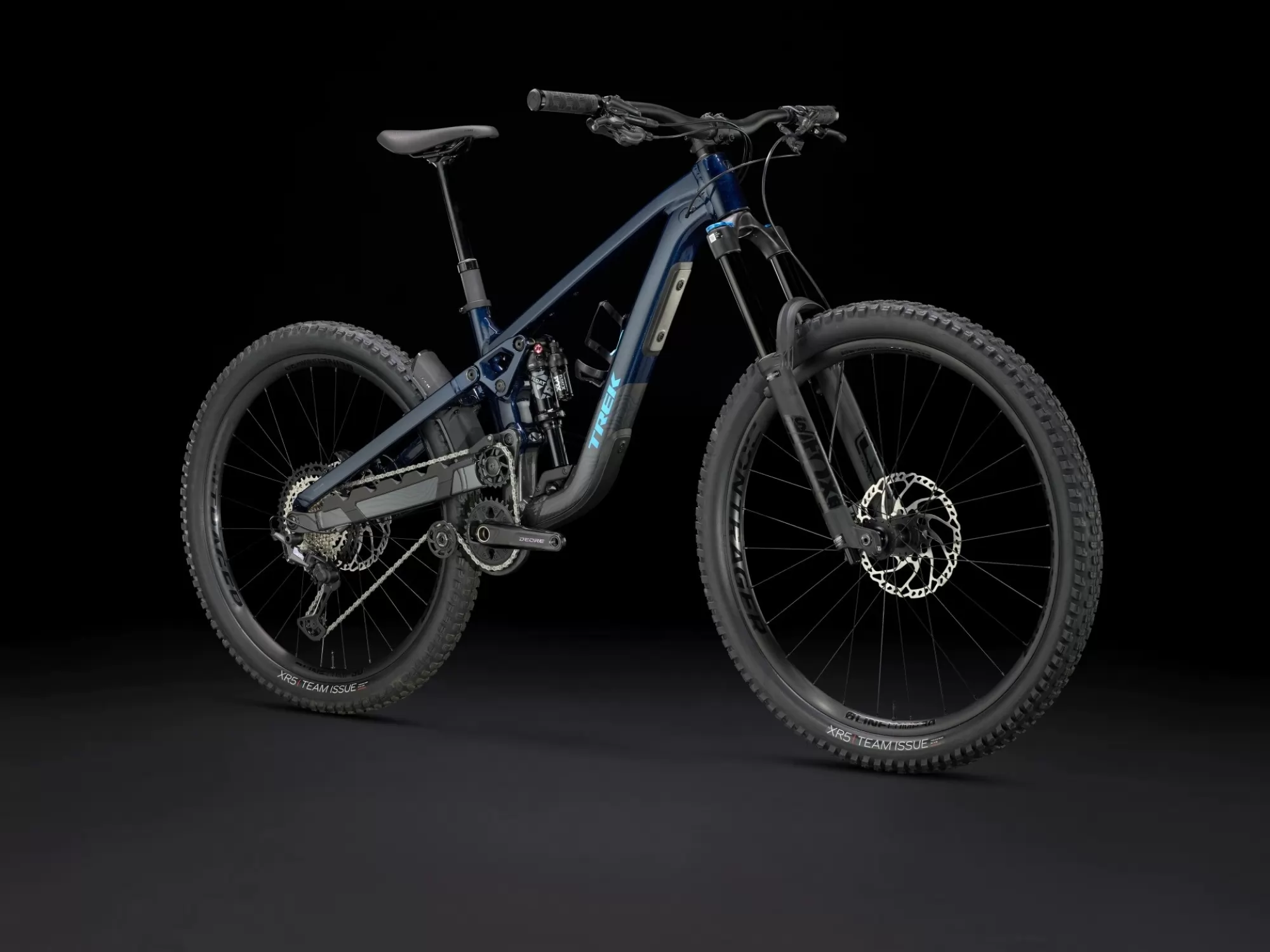 An Alpha Platinum Aluminium frame with high pivot suspension and idler pulley, plus internal storage. 170 mm of front and rear travel with a FOX Rhythm 36 fork with Float EVOL air spring and GRIP damper and a Fox Performance Float X shock.. Plenty of gears for punchy climbs with a Shimano XT drivetrain, a Bontrager Line Dropper and a MX wheel set-up with 29 in front and 27.5 in rear Bontrager Line Comp 30 Tubeless Ready wheels with Rapid Drive hub.