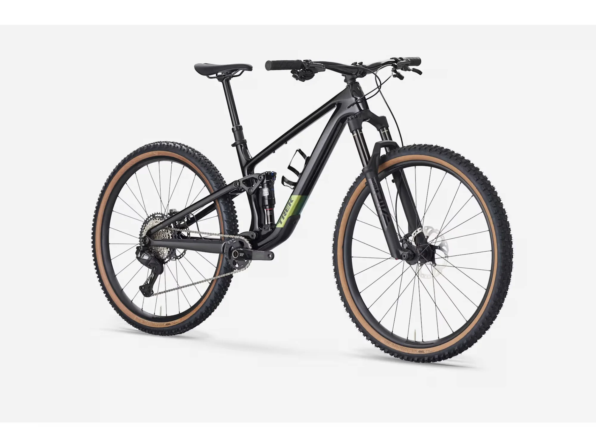 The Top Fuel 9.8 is a lightweight carbon trail bike built to rip up climbs and stay playful on descents. It gives you the confidence you want through roots and rocks, thanks to a 120 mm/130 mm (rear/front) RockShox suspension package with a Pike Select+ fork and Deluxe Ultimate shock. Plus, you get ultra-smooth and fast shifts from a 12-speed Shimano XT Di2 wireless drivetrain.