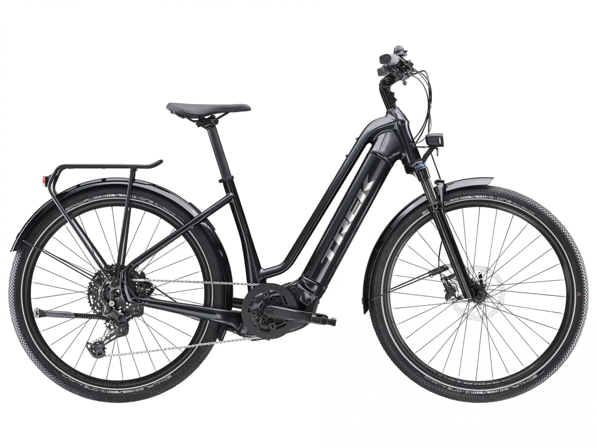 A sleek hydroformed aluminium frame with a lowstep design that makes it easier to hop on and off, a fully-integrated 625 Wh Bosch smart system battery, a powerful Bosch smart system CX (250 W, 85 Nm) drive unit that helps you sustain speeds of up to 20 mph (25 km/h in Europe) and a Bosch smart system LED remote with a Purion 200 display. Plus, a suspension fork with lockout, a 10-speed Shimano CUES drivetrain, hydraulic disc brakes, an integrated front and rear lighting system, mudguards and a rear rack.